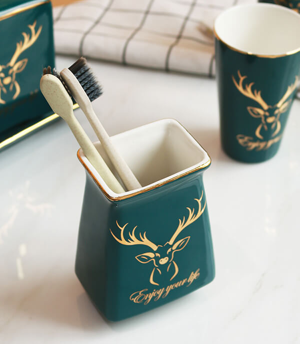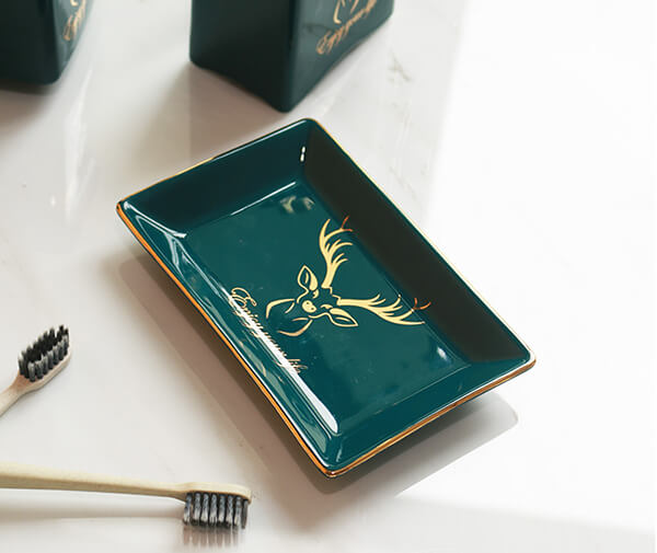 Thiết kế của bộ đồ dùng phòng tắm khách sạn tập trung vào sự kết hợp hài hòa giữa màu xanh chủ đạo và viền vàng nổi bật, tạo nên vẻ sang trọng và hiện đại. Màu xanh tượng trưng cho sự tươi mới và sạch sẽ, trong khi viền vàng thêm điểm nhấn tinh tế, phù hợp với không gian khách sạn cao cấp.